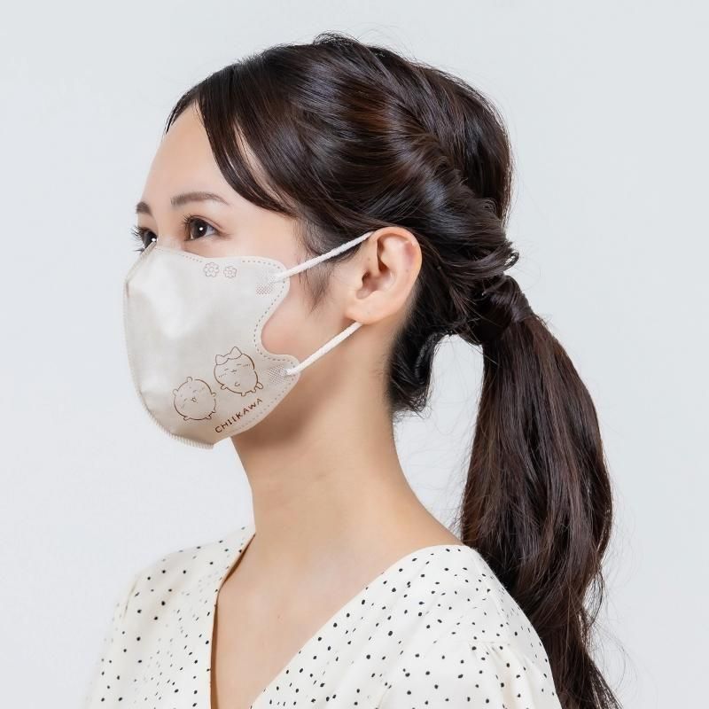 ●マスク本体にはかわいい姿のちいかわたちがエンボスデザインで施されており、魅力的な表情を引き出します。どんなファッションにも合わせられる肌なじみの良いベージュ色なので、普段使いにもぴったりです。