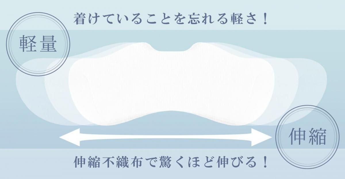 薄型で自然な着け心地です。無縫製のため、顔に跡がつきにくいです。